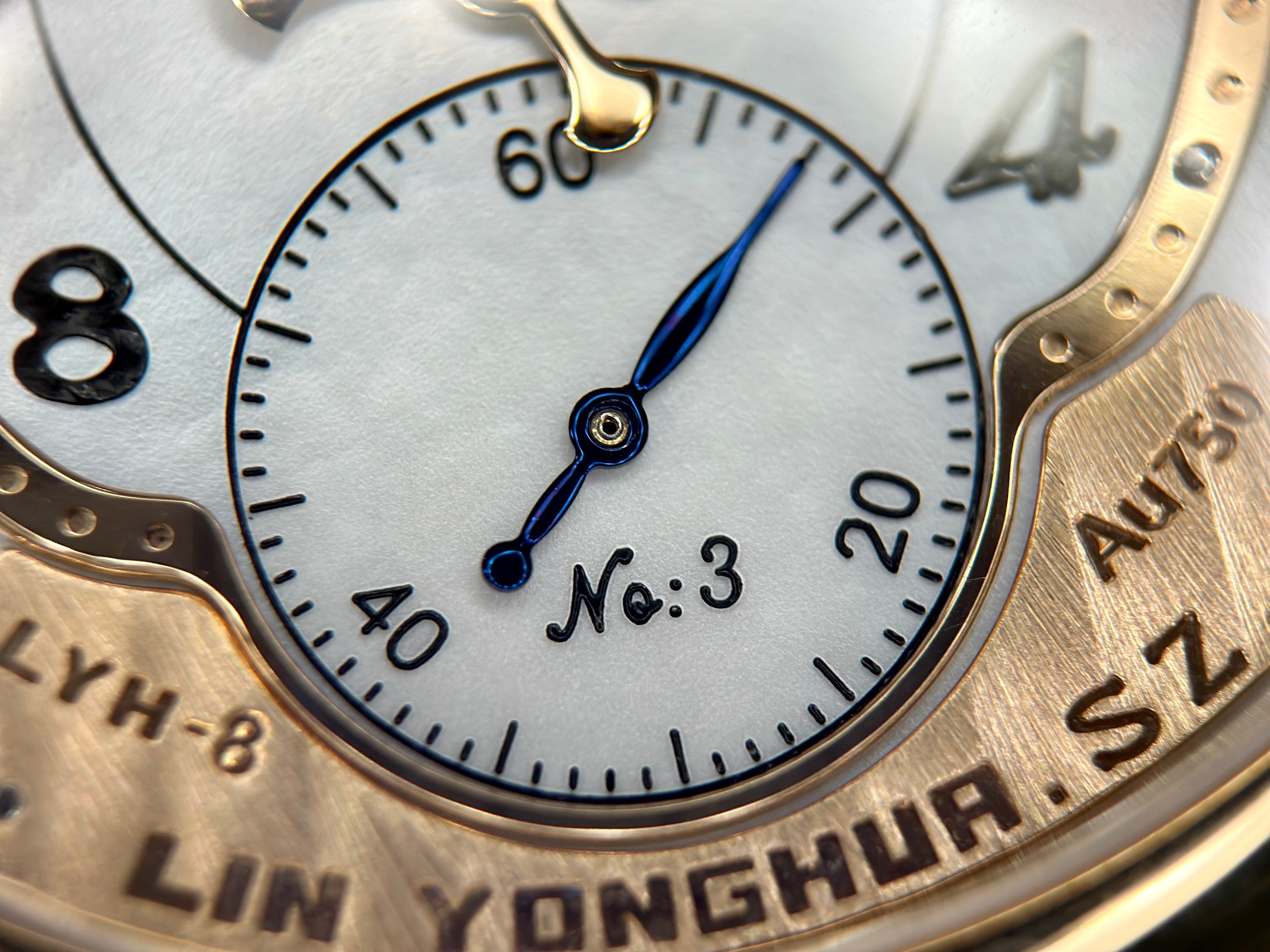 Every element of the LYH Asteroid is a testament to Lin Yonghua's impeccable traditional watchmaking skills. The timepiece showcases an eccentric mini rotor, a complete 18K red gold case, and an entire movement, with only the transmission gear and diamonds exempted from this regal material. This meticulous choice of material, combined with Lin's masterful artistry, imbues the Asteroid with unparalleled delicacy and compactness. Each detail is a reflection of the watchmaker's unwavering commitment to perfection.