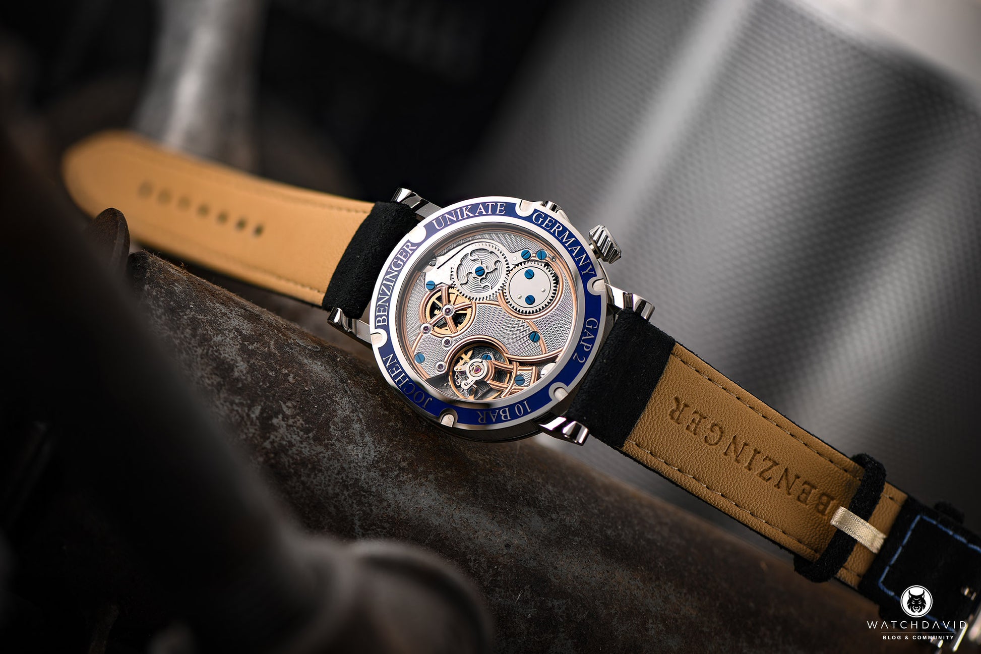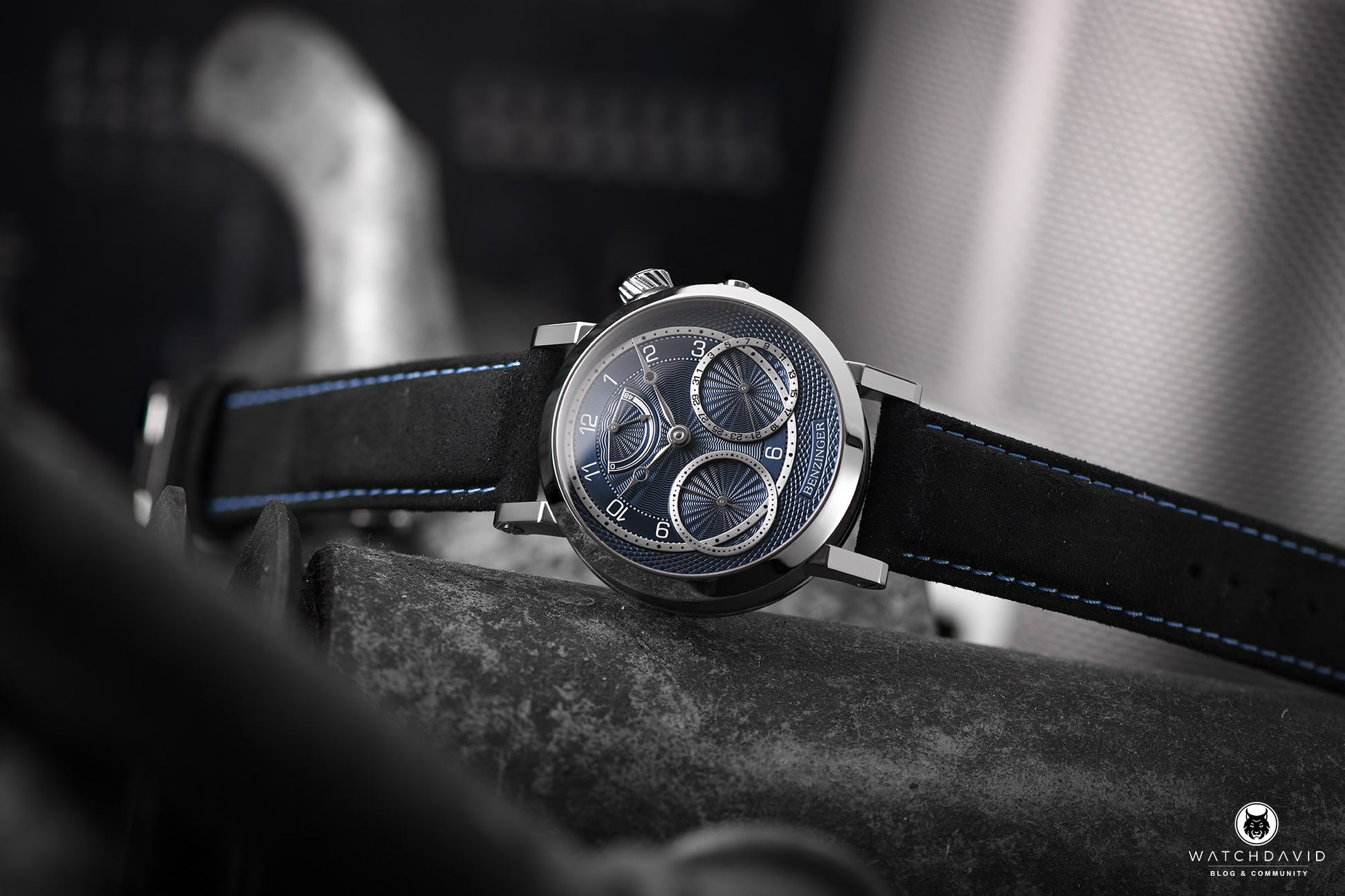 The new version of the GAP 2 is technically even more sophisticated than the GAP 1. The biggest challenge - apart from the offset hours and minutes and the small seconds on the same axis as the date display - was the additional installation of a power reserve (48 hours). Habring managed to install this power reserve via differentials and various additional gear chains in exactly the same place where it now sits: directly below the 12 o'clock display. And this more technical design is also continued on the back of the watch, as the elaborately skeletonized movement has now given way to a hand-guillochéd three-quarter plate, which gives the GAP 2 movement a calmer, more elegant appearance.