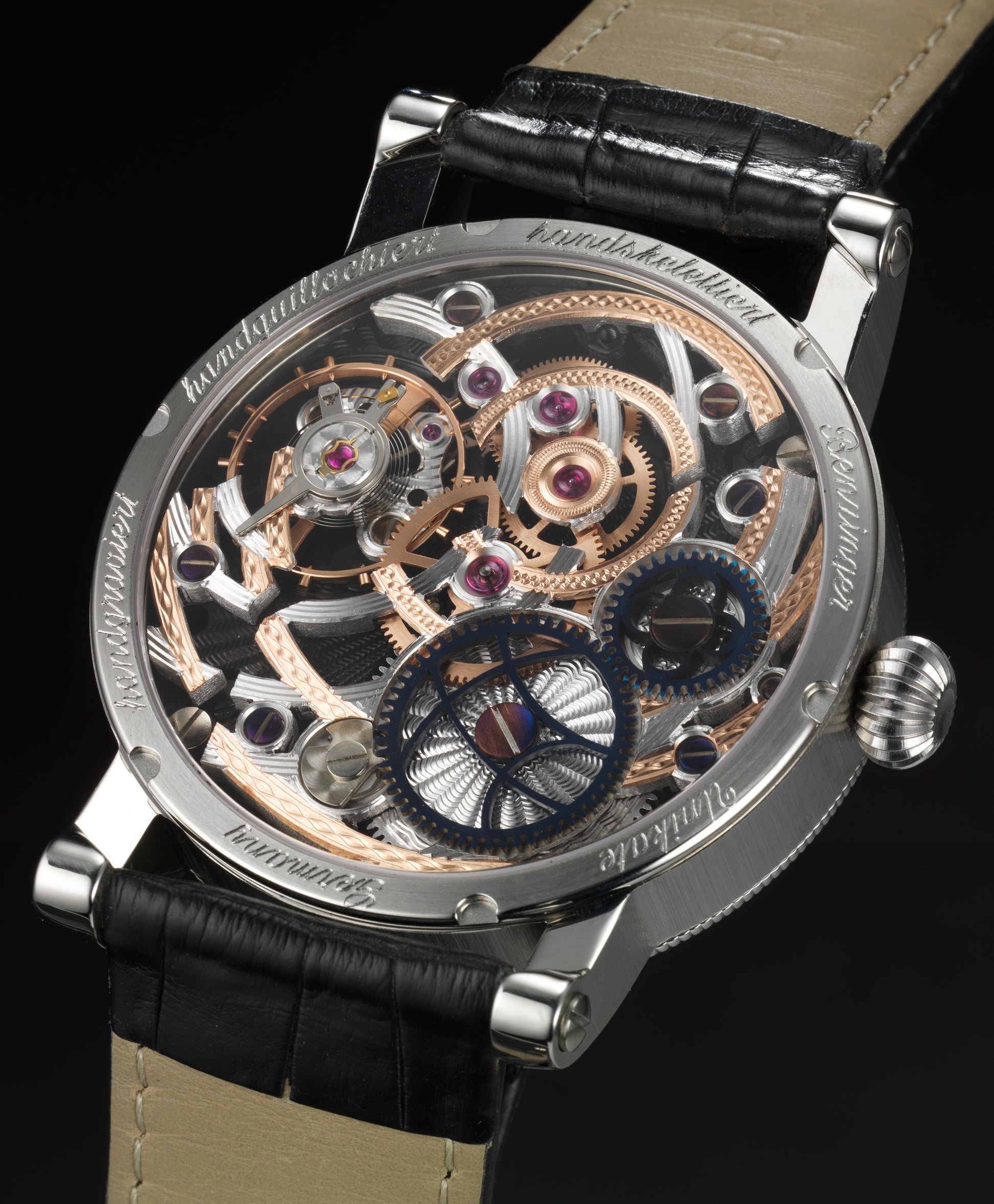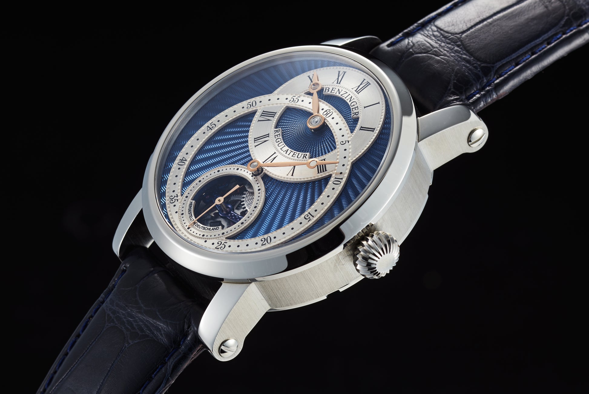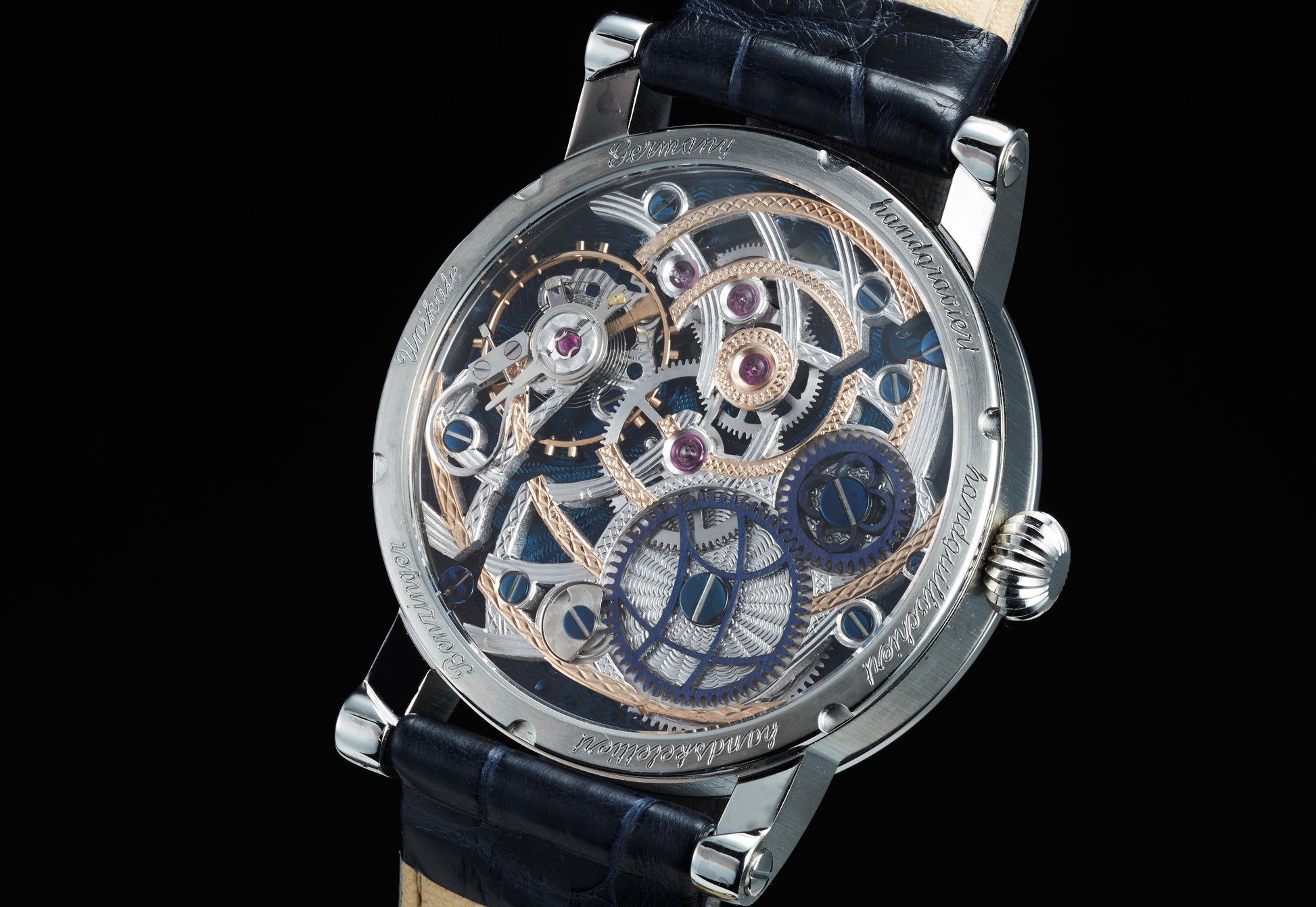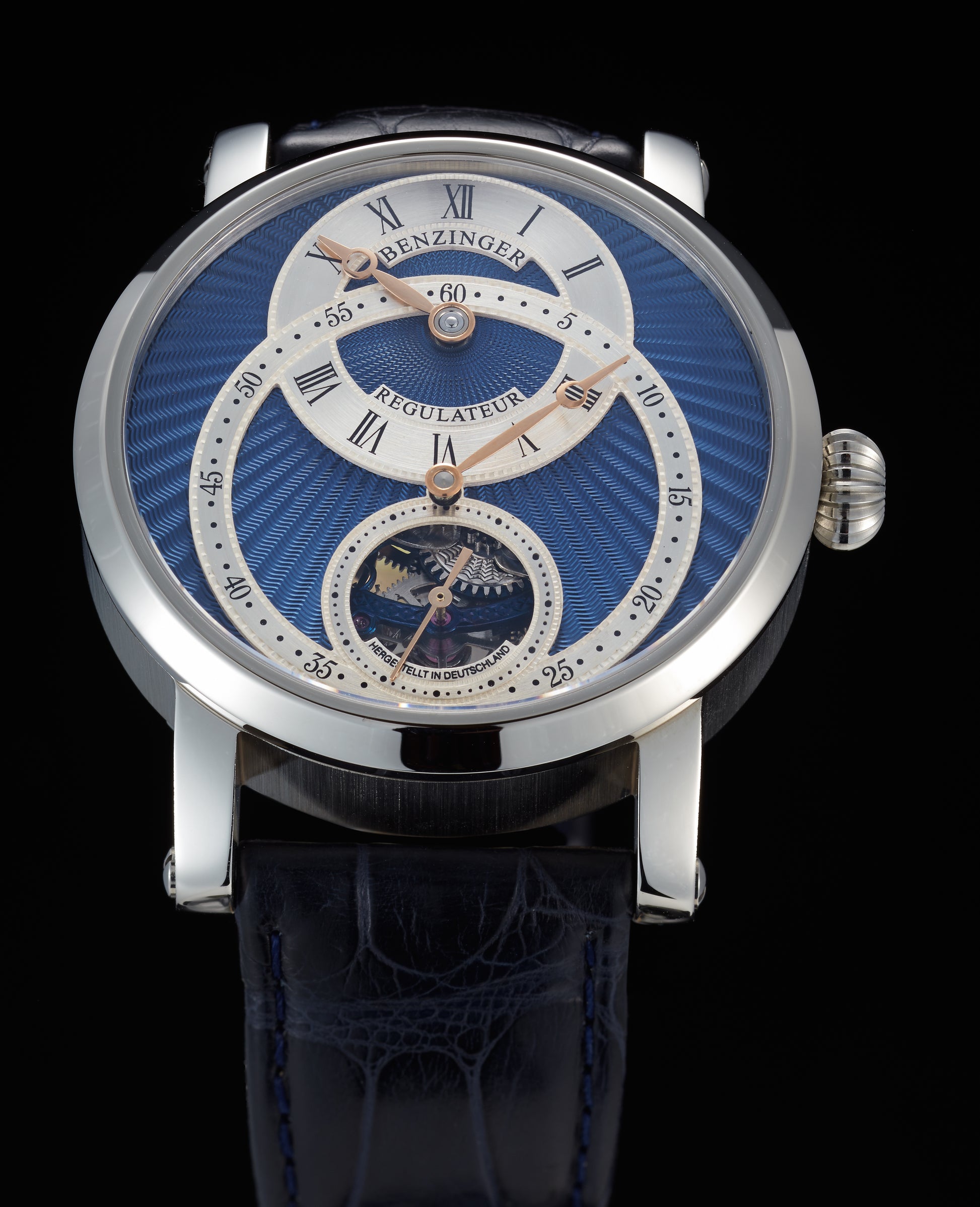 - Ground dial: Coated with blue Galvano lacquer & ribbon guilloche