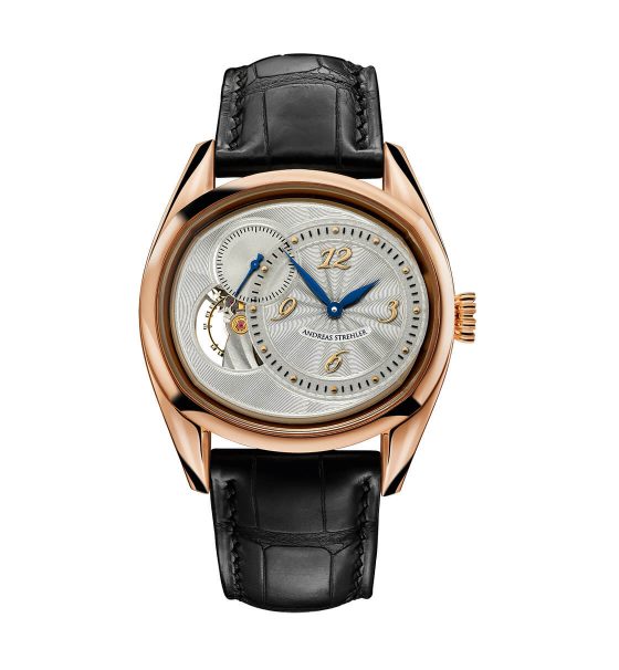 Nevertheless, the watch does have a certain transparency. Strehler opted against the classical layout of the dial displaying hours and minutes with a separate small seconds dial. Instead the breathing of the spirals is visible through the dial. This enables the wearer to look into the dial rather than at it. Starting with the small seconds counter in its dominant position at 10 o’clock which has never been before realized in any movement, one can follow the different increasing increments of time as they are displayed on different levels of the dial.