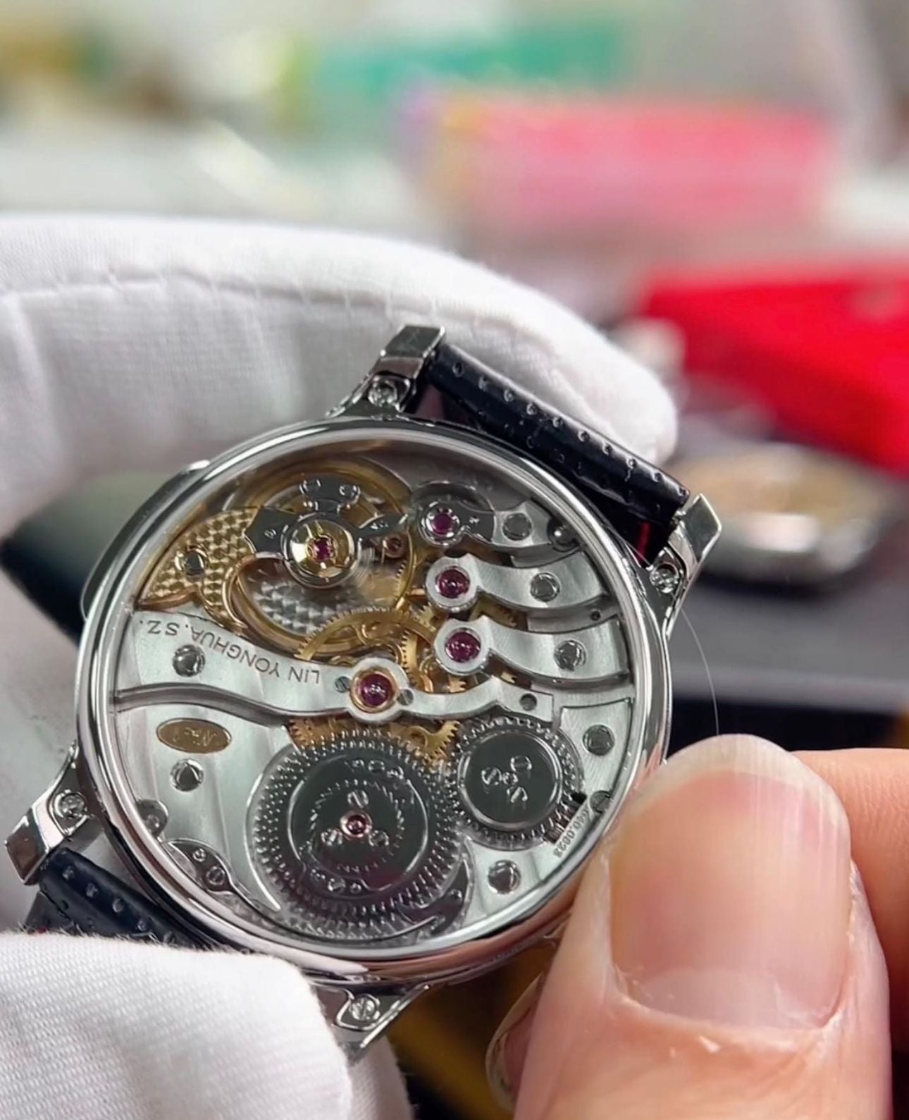 Created by LYH as a model contains multiple functions. A sister model of LYH-6. A mighty, fine-polished manual movement can produce stable power output and accurate time display. The dial shows multiple functions clearly by locates them in various area. Well-selected Mother-of-pearl make the piece active and diverse.