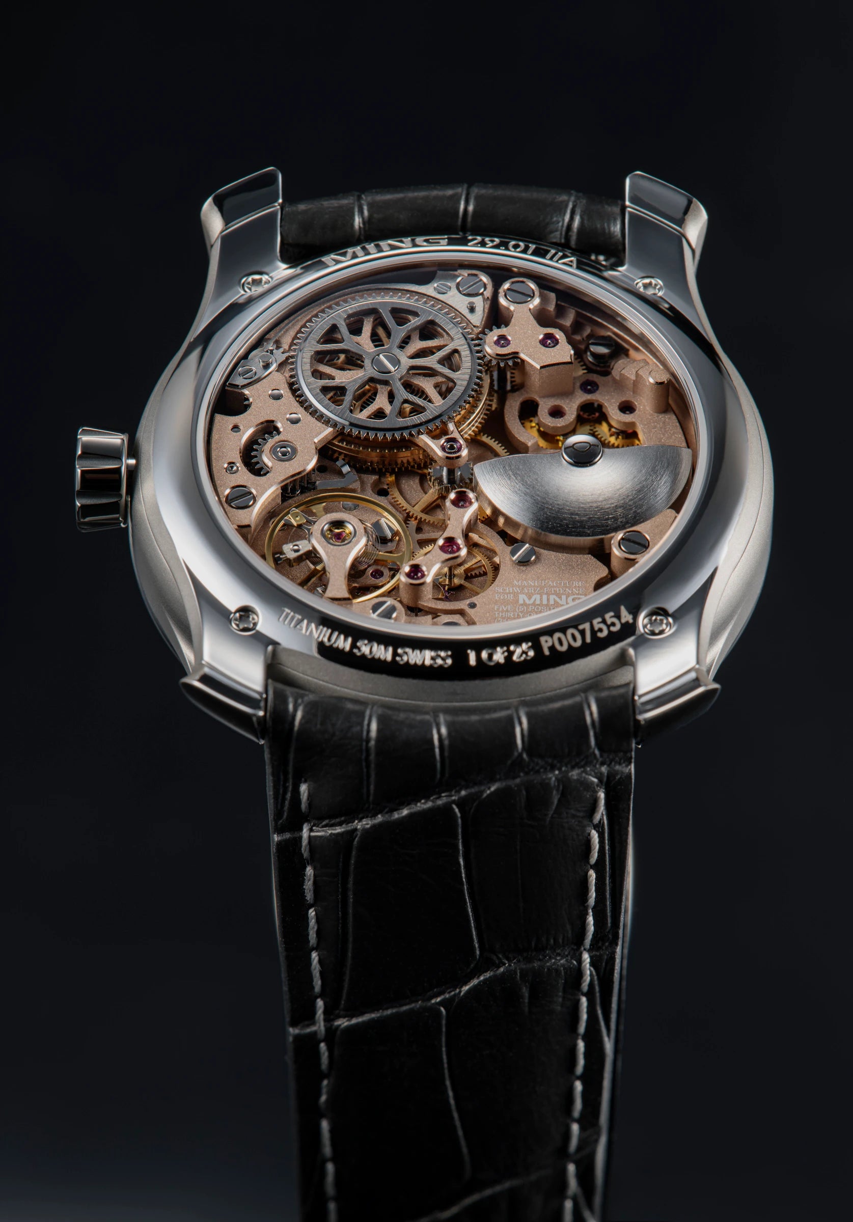 We’ve made a couple of design and functional tweaks to differentiate this new edition of the 29.01 from its sibling: firstly, the debut of a rose gold finish for our second generation Schwarz-Etienne for MING ASE222 microrotor automatic, and adjustments to the city ring.