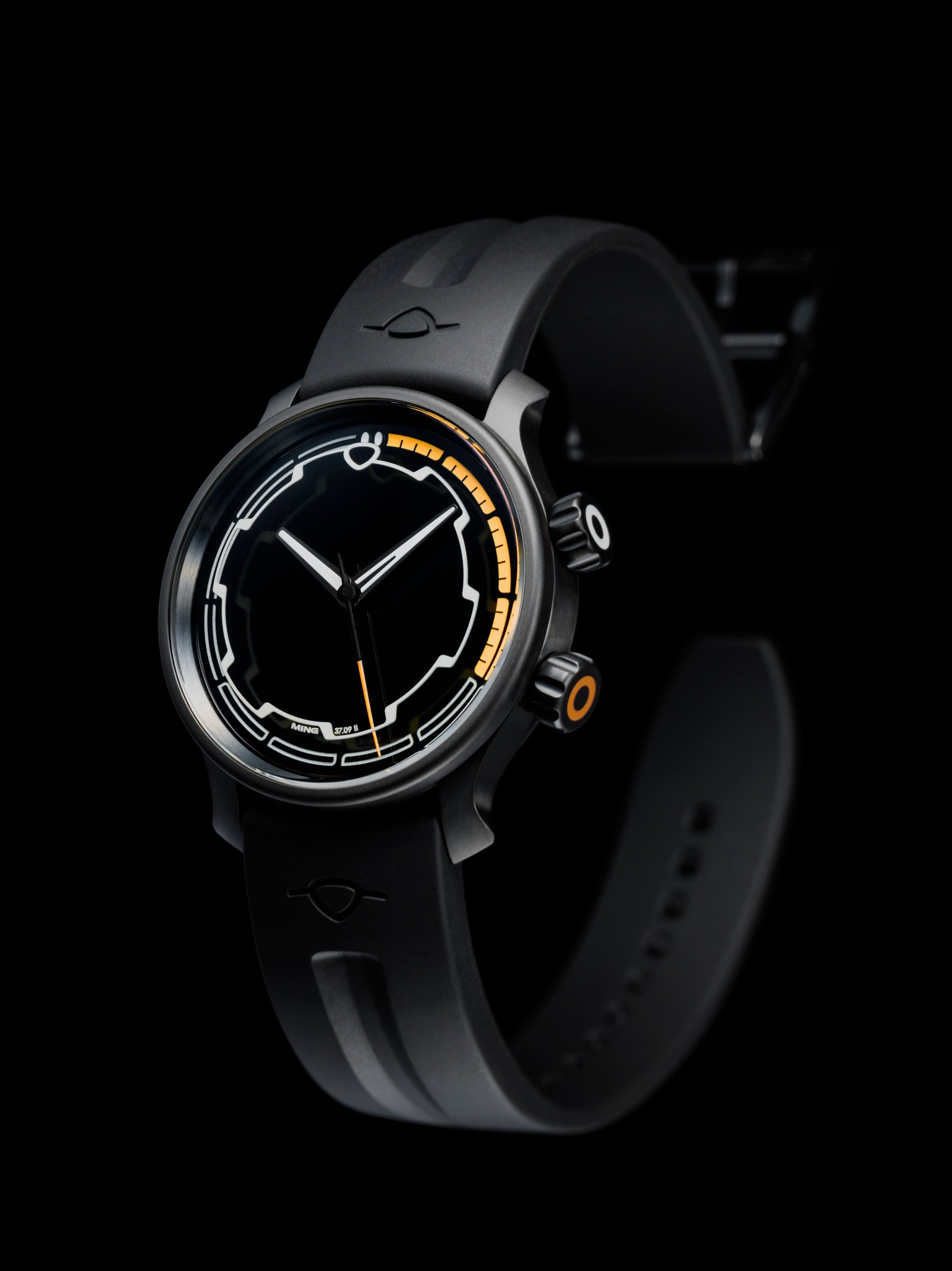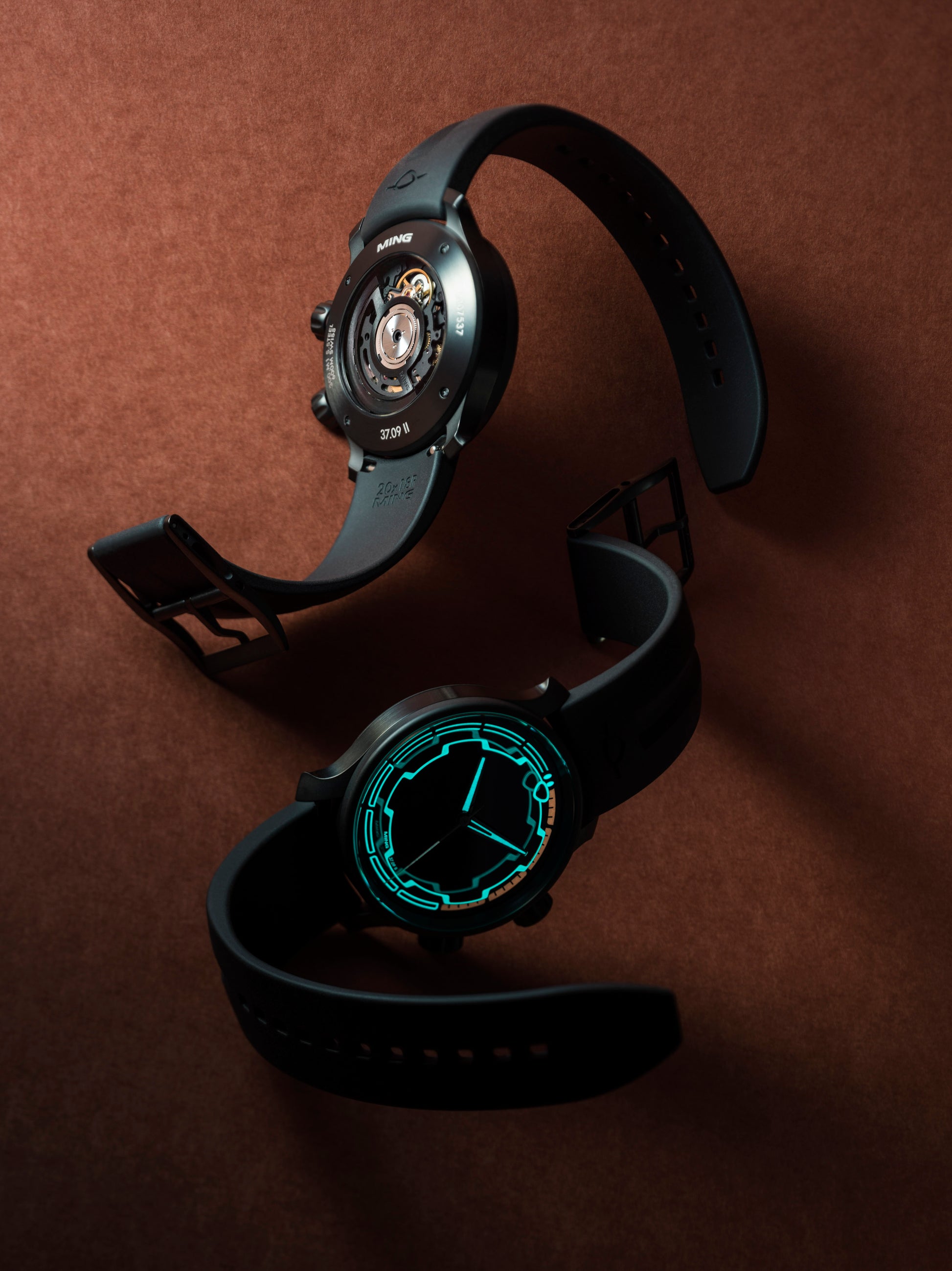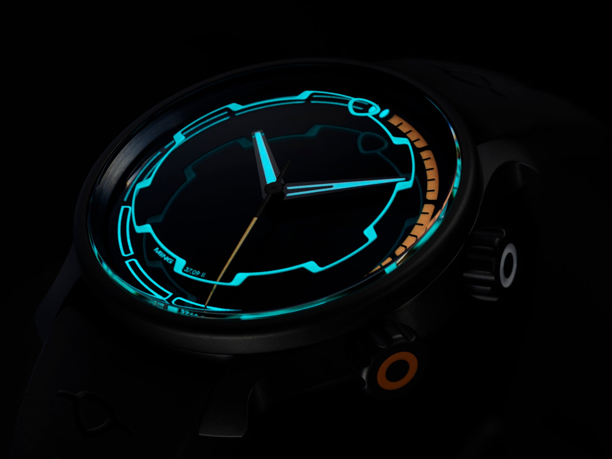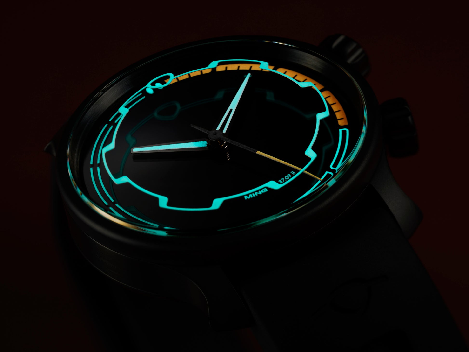 The Uni introduces a new design for the hour indices, carries an abundance of Super- LumiNova on the dial, top crystal and hands, and is the first MING to have orange emission Super-LumiNova – to echo its namesake. Ensuring optimal reliability is an automatic Sellita for MING SW300.M1 in a unique finish.