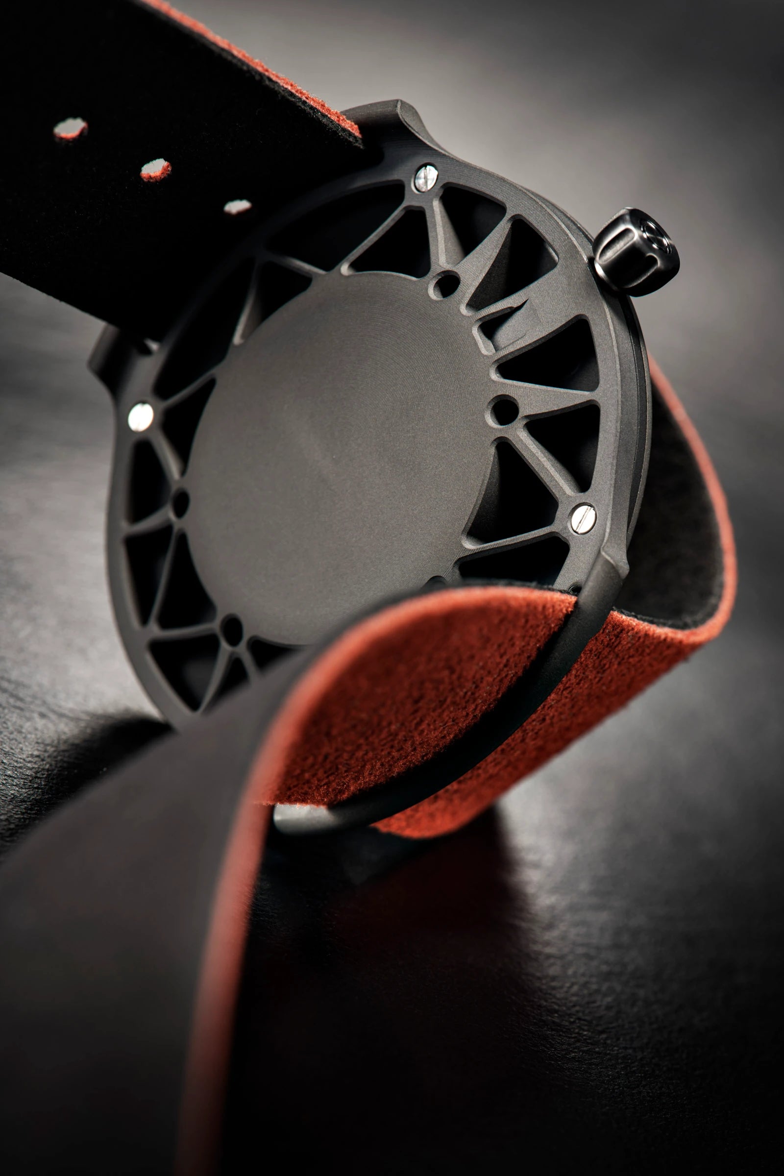 To machine AZ31 magnesium – let alone to the wall thicknesses and tolerances required – requires some special expertise. Reto Helfenstein of Helfenstein Mechanik was brought in on the recommendation of some mutual friends; his expertise with similar materials for the aerospace industry has proven invaluable. The raw AZ31 billet comes from Smiths High Performance in the UK, and Keronite handles the plasmaelectrolytic oxidation. Manufacture Jean-Rousseau created the single layer Alcantara straps that weigh just 1.2 grams, yet are soft and comfortable to wear without being floppy. Included with the watch are also a selection of other straps for a different feel. We also include a second buckle – in aluminium and in our tuck buckle design – by DBMF. Manufacture Schwarz-Etienne figured out which components within the ETA2000 could be removed or lightened to further save weight, and which had to remain untouched for reliability. Final assembly and testing are conducted at Schwarz-Etienne.